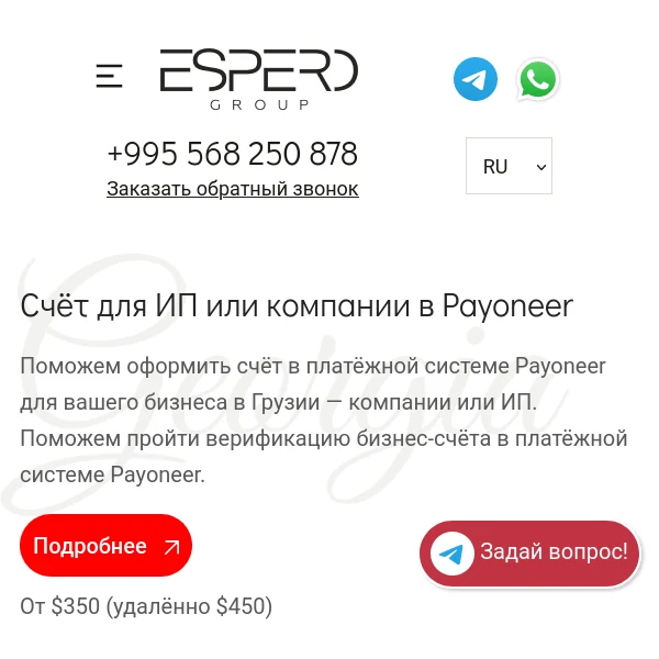 Я хочу выразить огромную благодарность компании Эсперо за их профессионализм и помощь в получении вида на жительство Грузии. Работа с ними была не только эффективной, но и приятной, благодаря высокому уровню сервиса и индивидуальному подходу.